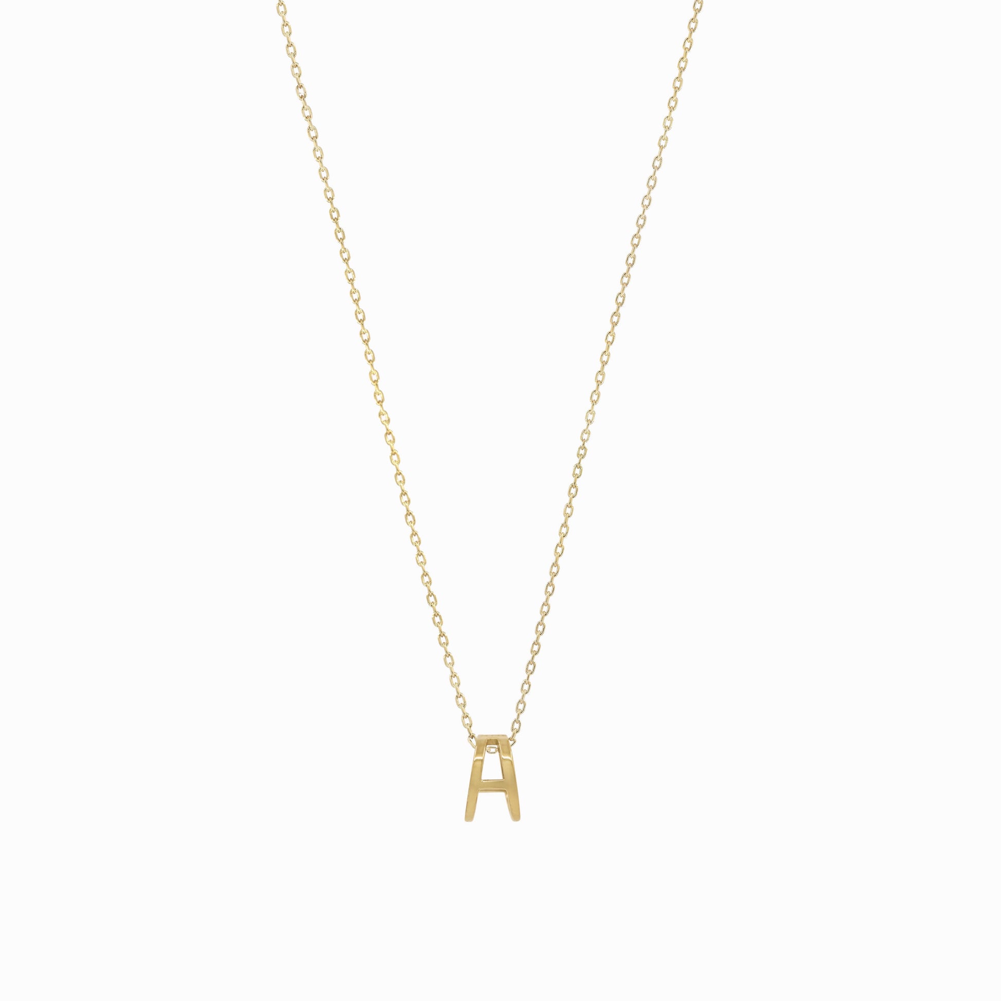Eclipse A Initial Letter Necklace 14K Solid Gold
