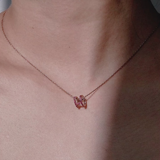Eclipse H Initial Letter Pavé Pink Sapphire Charm 14K Rose Gold | September Birthstone