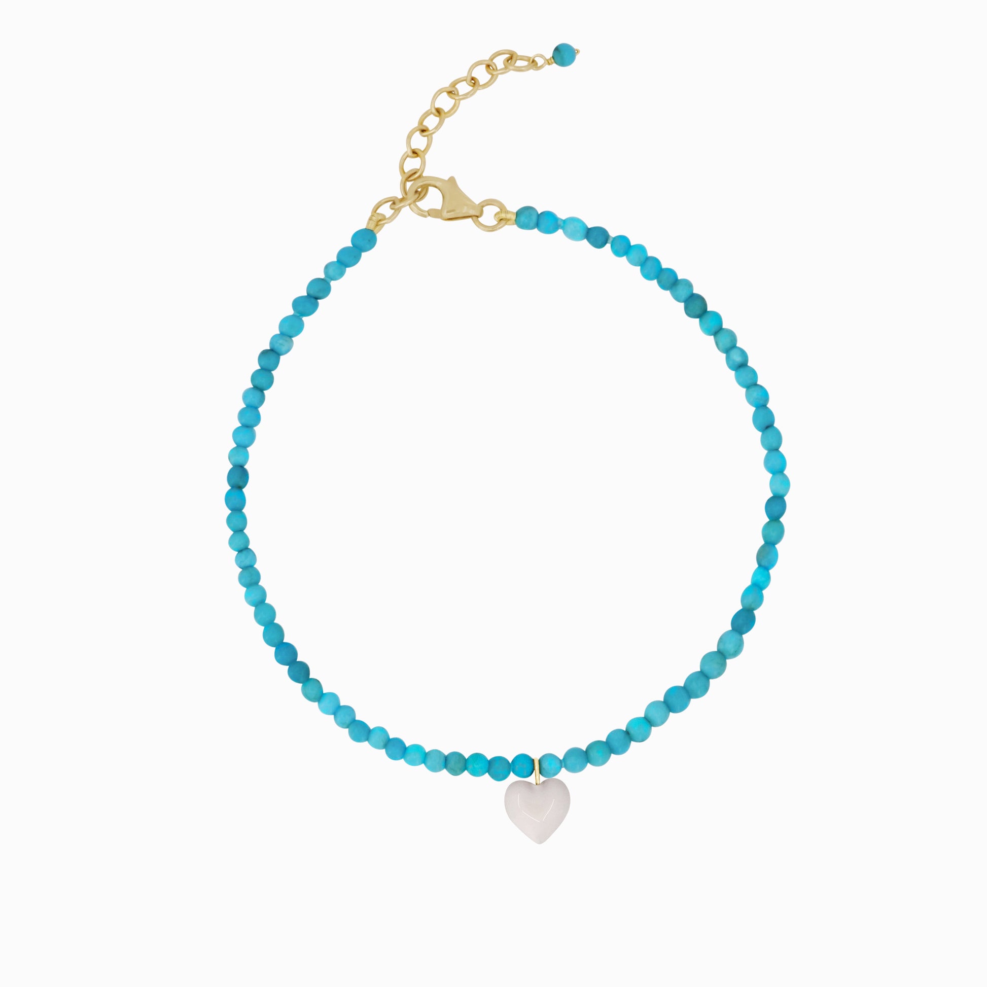Full Heart Enamel Turquoise Bead Bracelet 14K Solid Gold