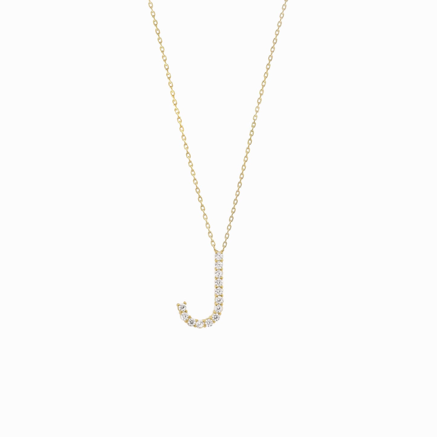 J Initial Letter Pavé Diamond Necklace 14K Solid Gold