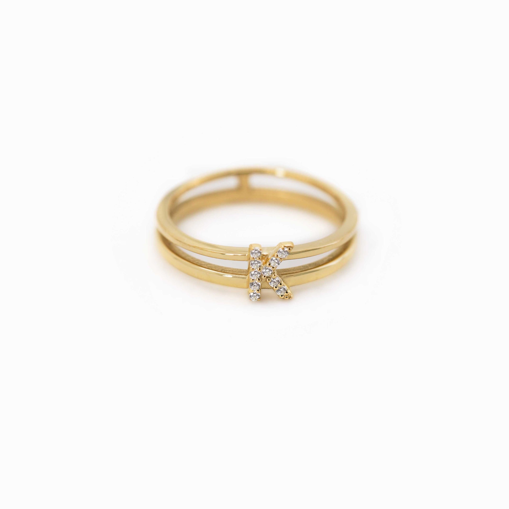 Product title: K Initial Letter Pavé Lab Diamond Ring 14K Solid Gold