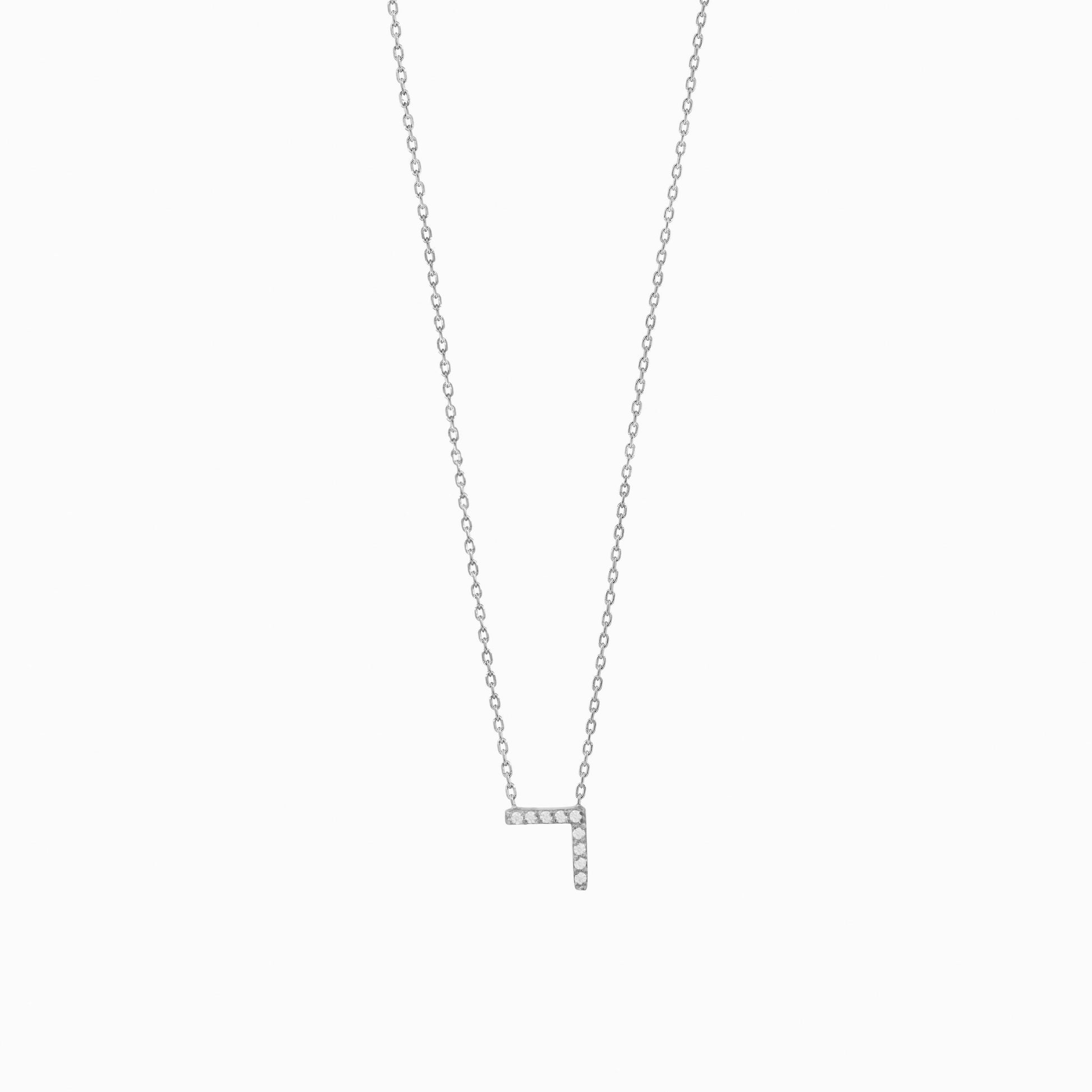 Korean Hangul Letter Pavé Lab Diamond Necklace Sterling Silver ㄱ