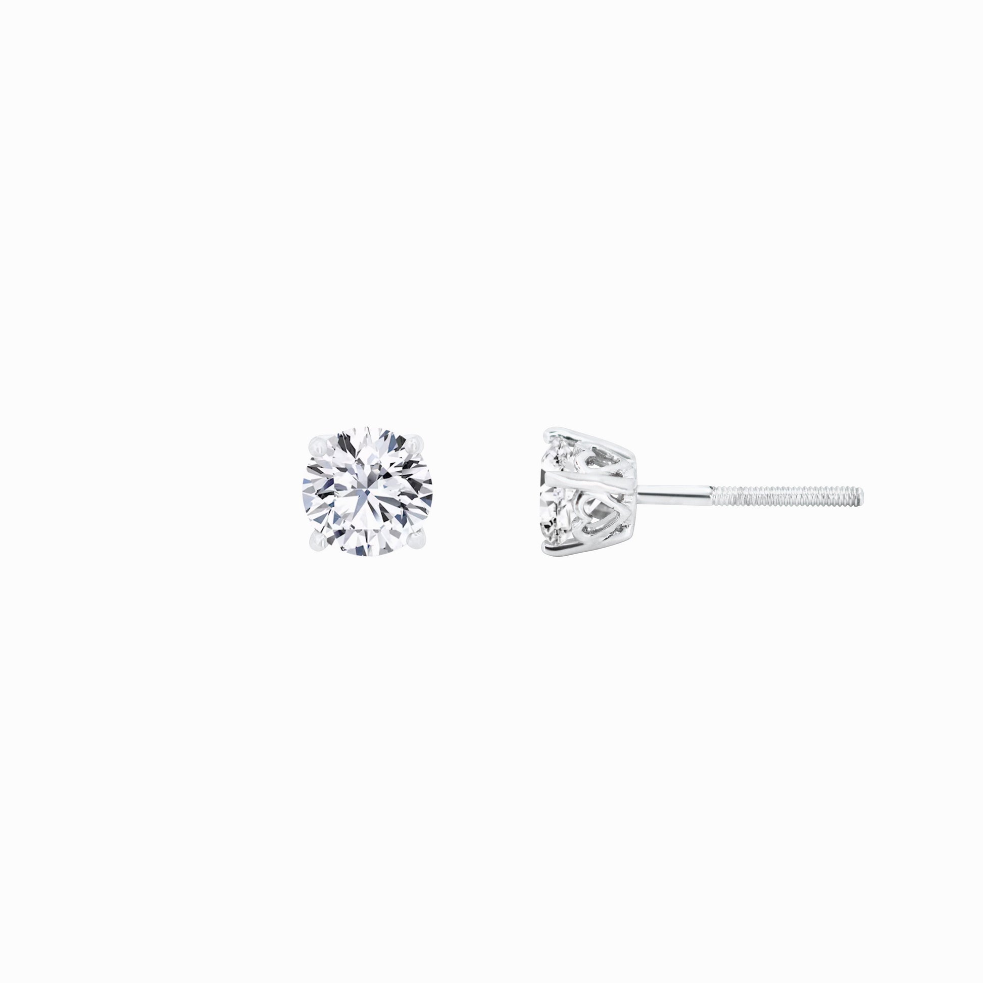 A pair of Round shape Lab Created Certified Diamond set and secured by four prongs. The simple beauty given off by the solitaire stud makes it a solid choice for a fascinating piece of jewelry.