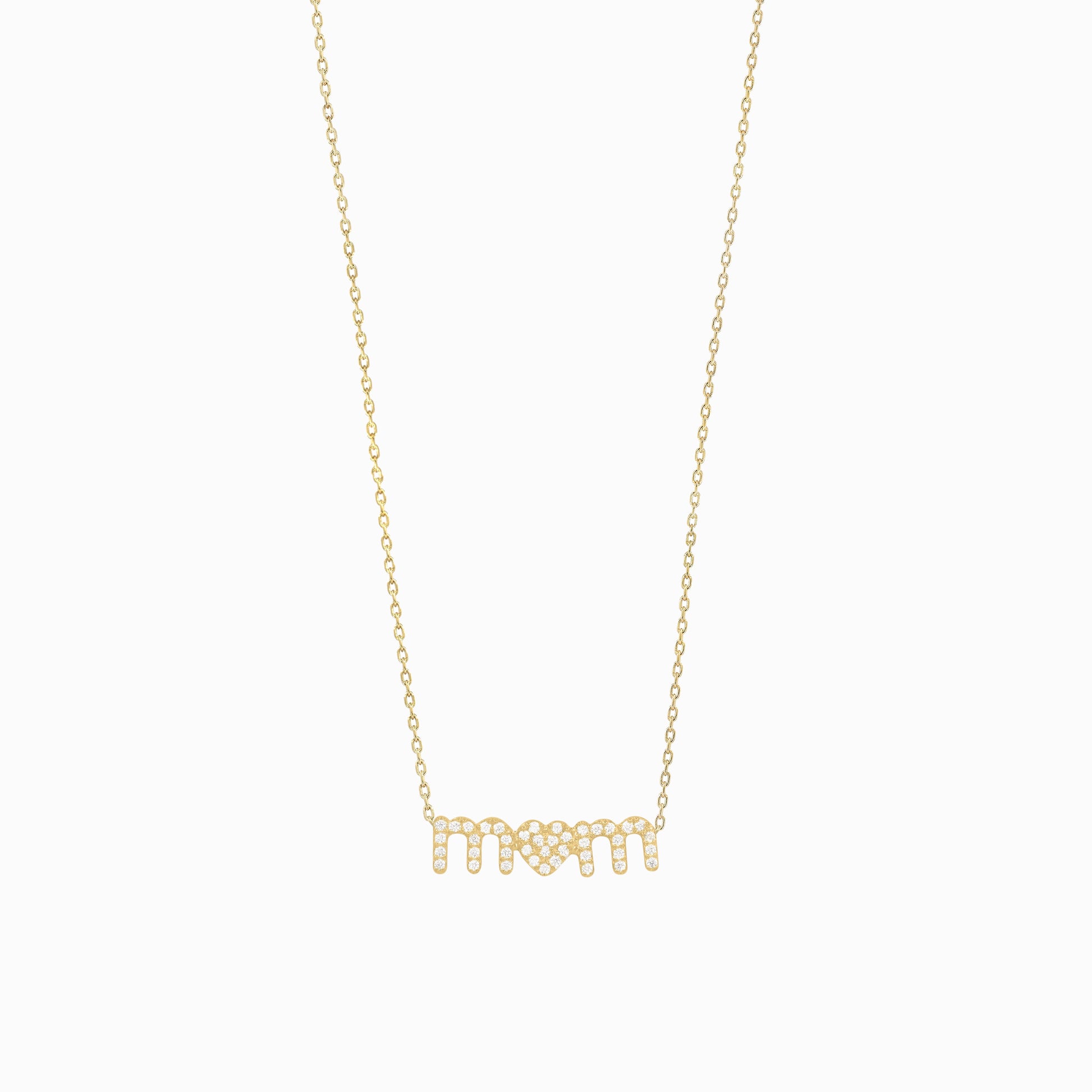 Product title: Love Mom Pavé Lab Diamond Necklace 14K Solid Gold