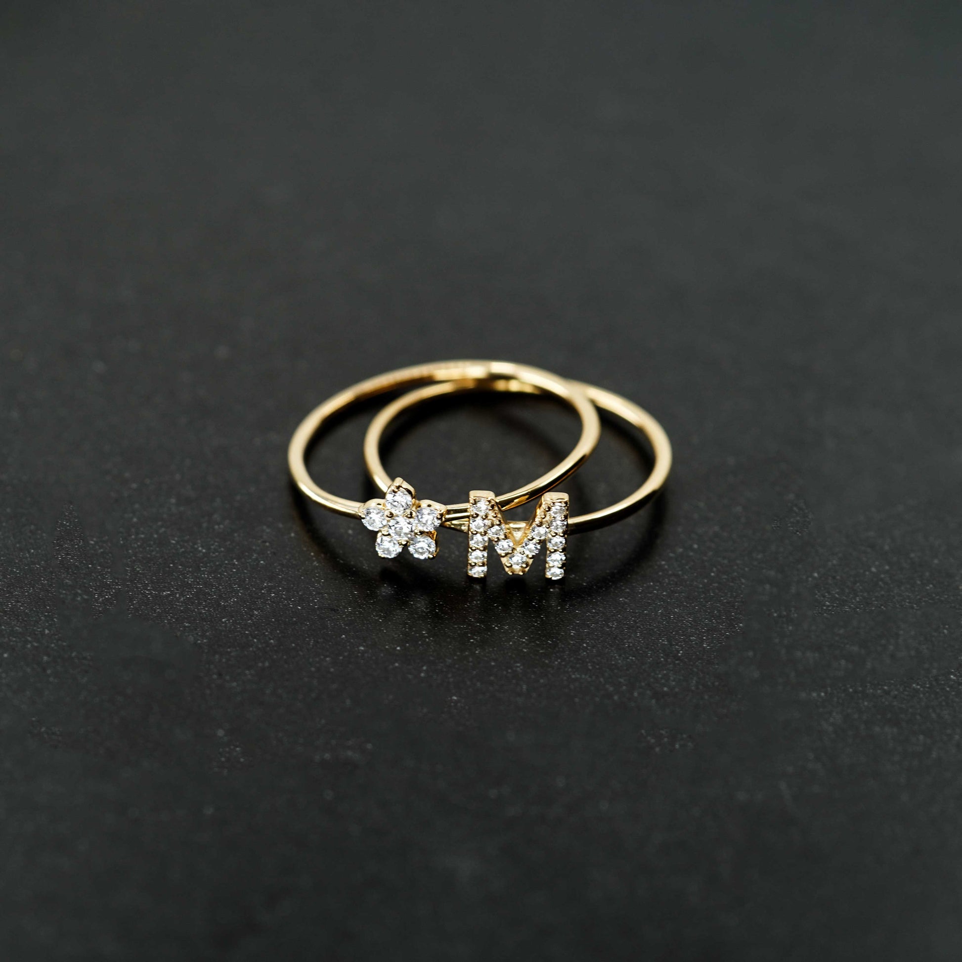 M Line Initial Letter Pavé Diamond Ring 14K Solid Gold