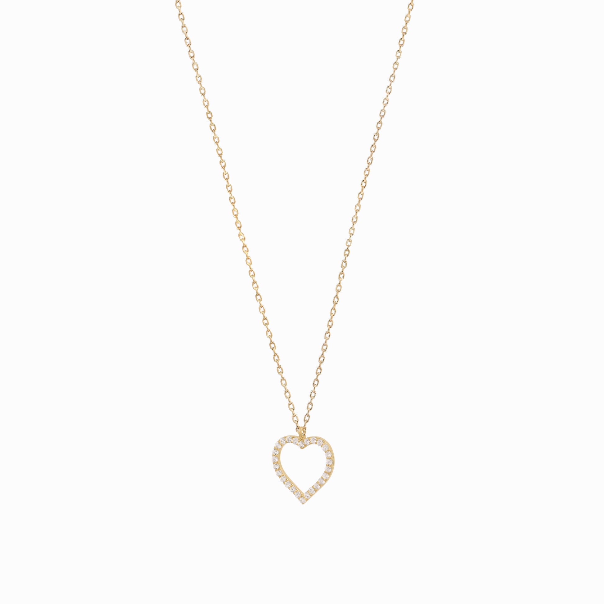 Open Heart Pavé Lab Diamond Necklace 14K Solid Gold