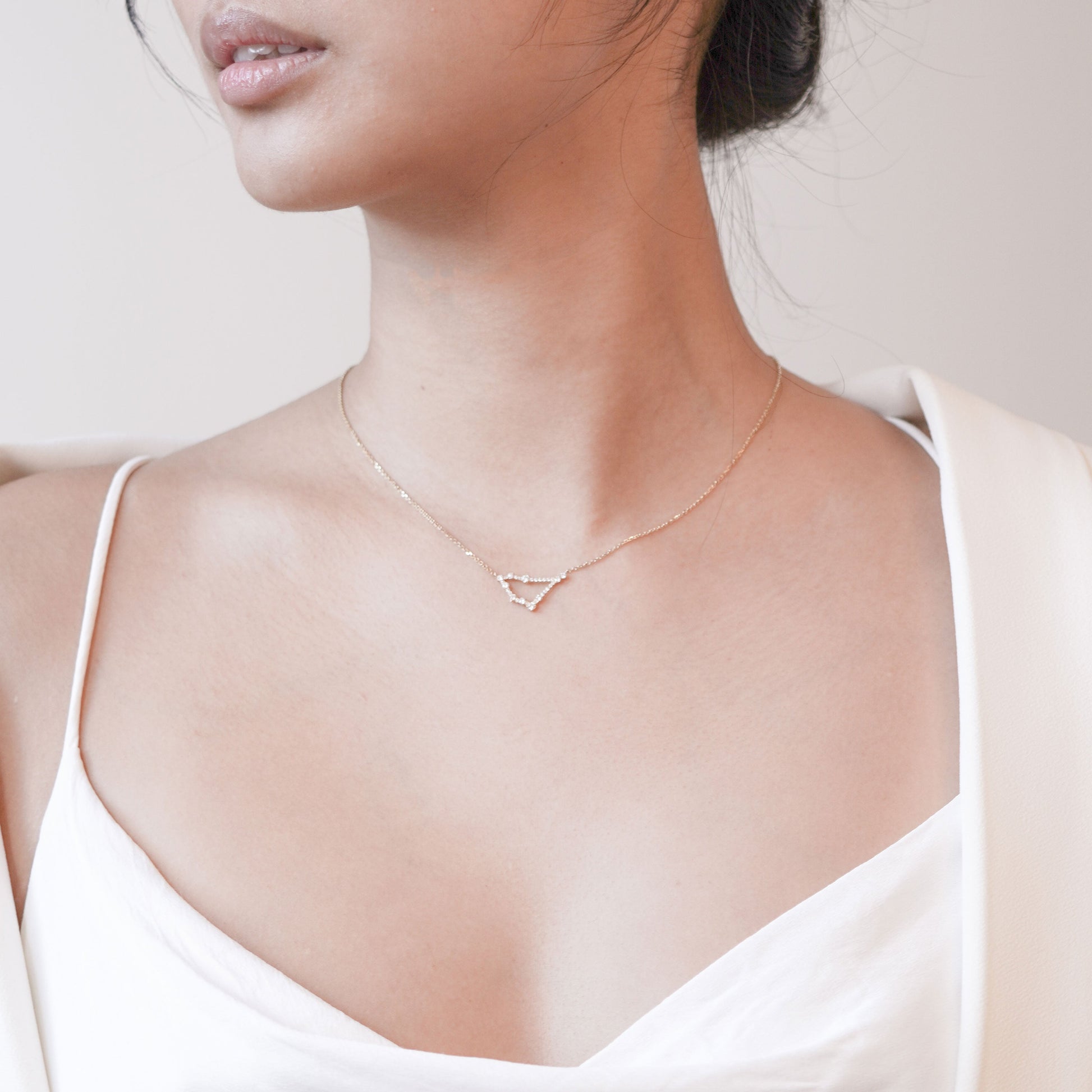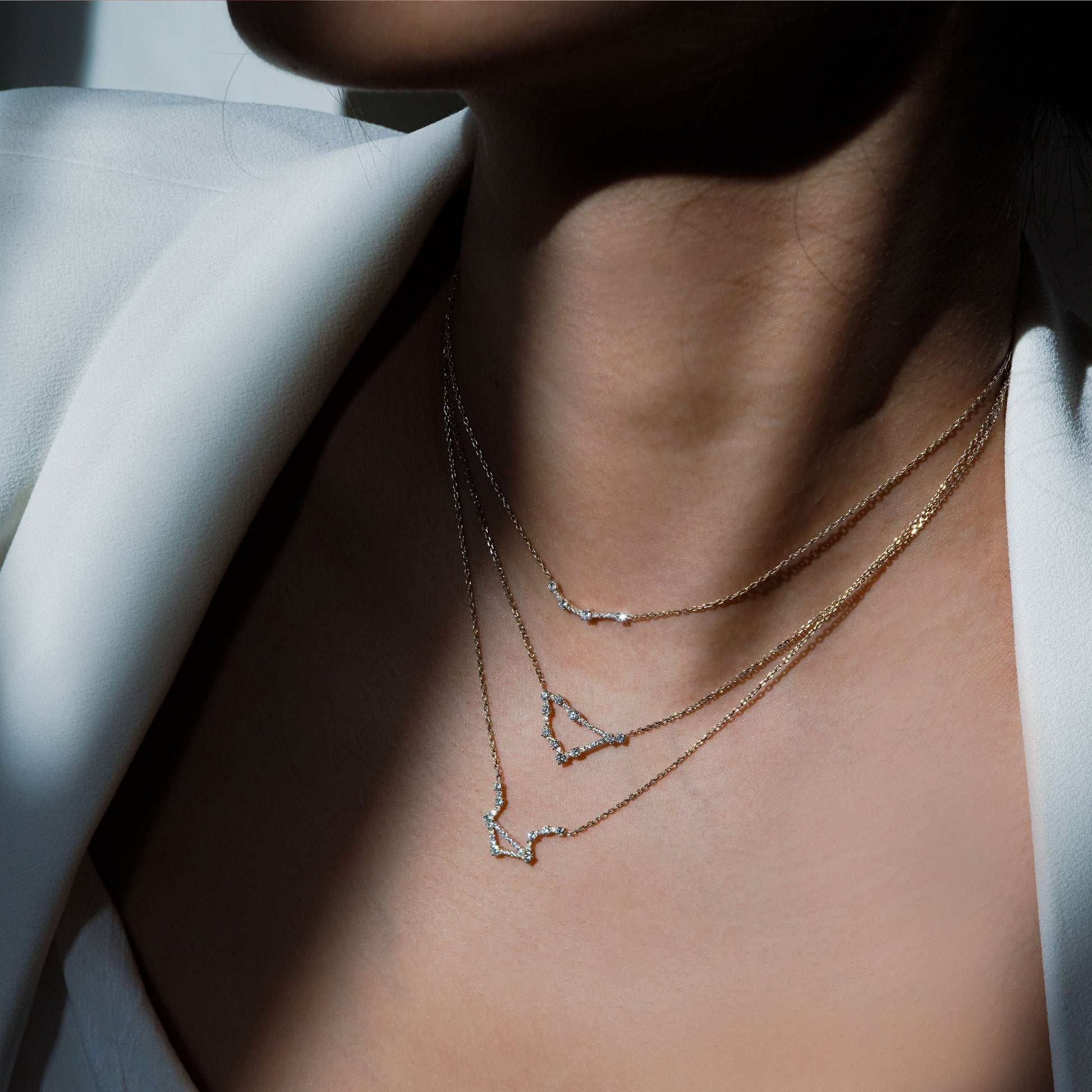 Pisces Constellation Pavé Diamond Necklace 14K Solid Gold