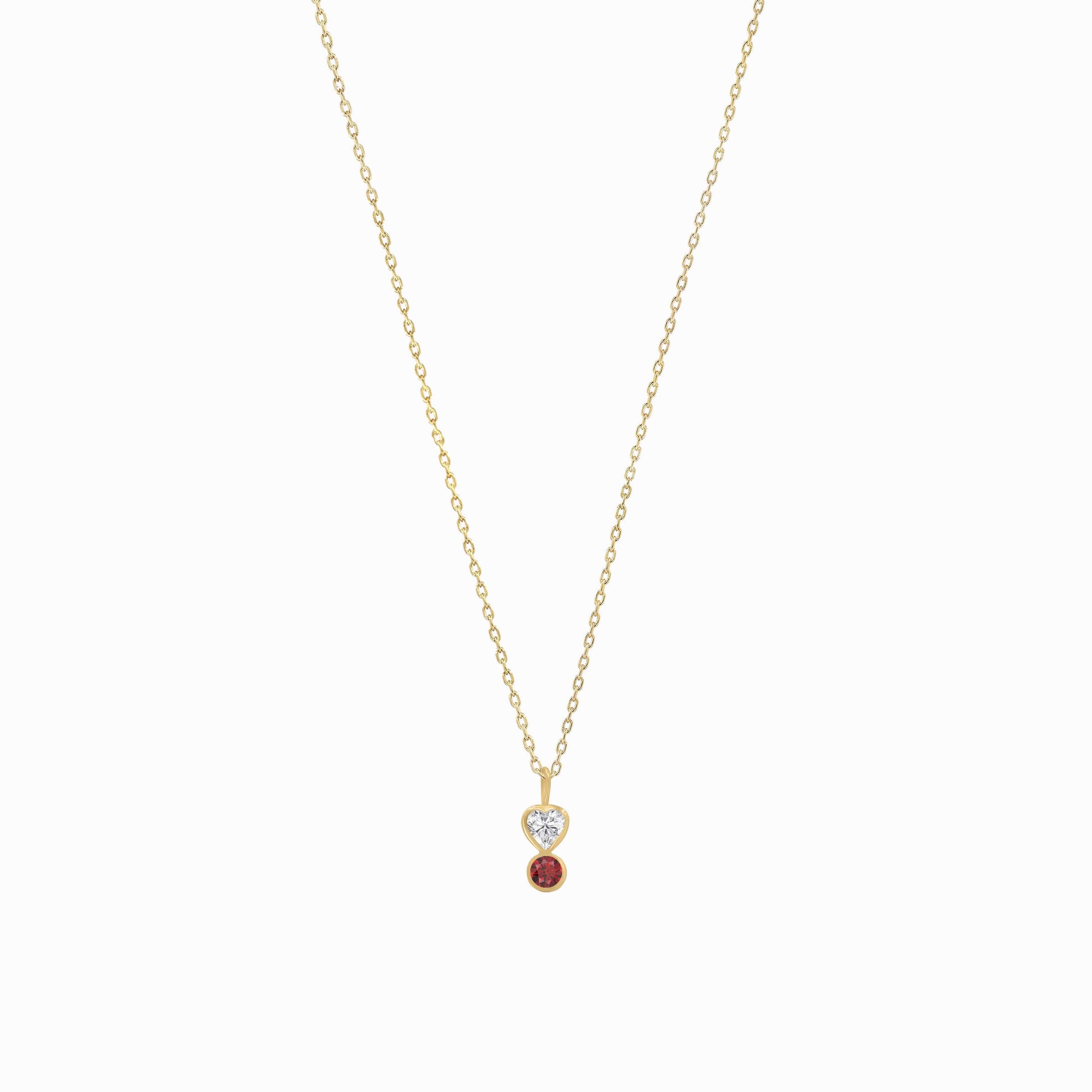 Heart Shape Lab Diamond & Natural Ruby Charm 14K Solid Gold | July Birthstone